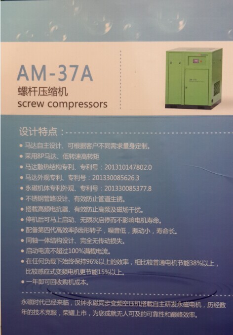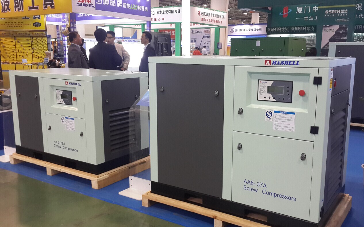 漢鐘精機做為國內(nèi)流體機電產(chǎn)業(yè)的領(lǐng)導(dǎo)者,此次參展的產(chǎn)品有工頻螺桿式空壓機、變頻螺桿式空壓機、永磁變頻螺桿式空壓機、以及漢鐘機頭;其中永磁變頻螺桿式空壓機的超級節(jié)能為眾多參展客戶所吸引。