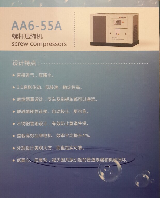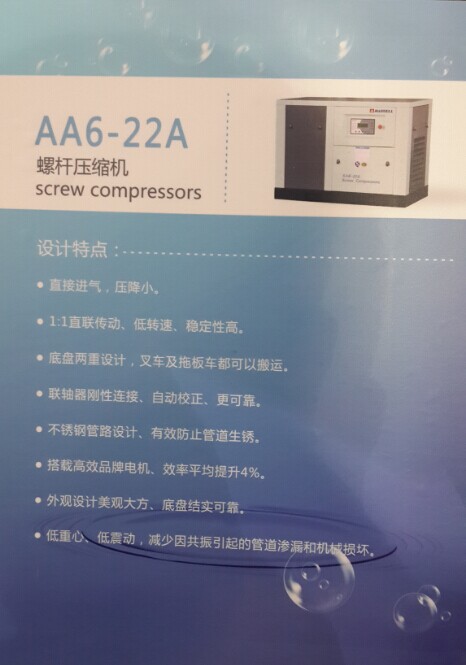 普通工頻螺桿式空壓機,不銹鋼管設(shè)計,不易腐化漏油,1:1直聯(lián)傳動